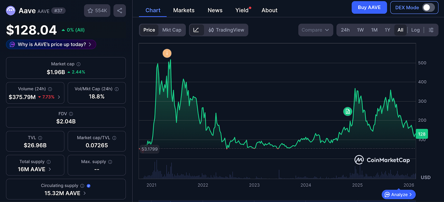 Aave’s February 2026 “Aave Will Win“ framework attempts a more forward path - providing economic alignment along with the brand IP. The protocol promises all revenue - product revenue, swap fees, interface income, and institutional services to flow to the DAO treasury.