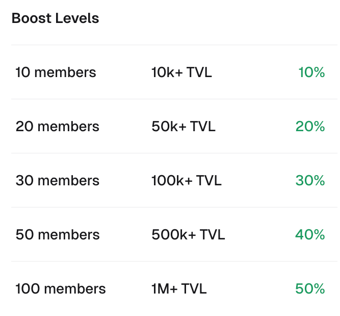 The more members you bring to the platform and the higher the value of collective deposits the team makes, the bigger the boost you earn.