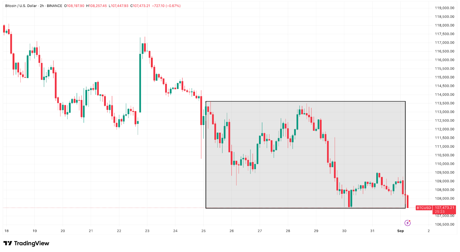 Bitcoin closed the week on August 31 at $107,840, down 4.6% for the week.