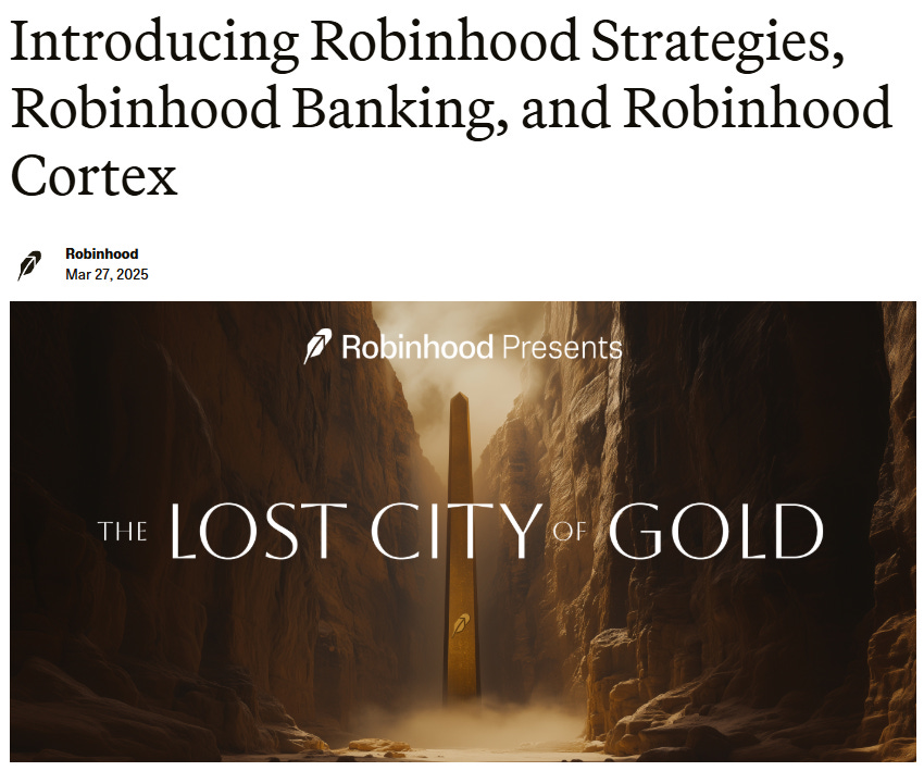 Last week, it unveiled three new products - Robinhood Strategies, a wealth management service charging 0.25% annually (capped at $250) for Gold subscribers; Robinhood Cortex, an AI-powered research assistant; and Robinhood Banking, which will offer checking and savings accounts with same-day cash delivery.