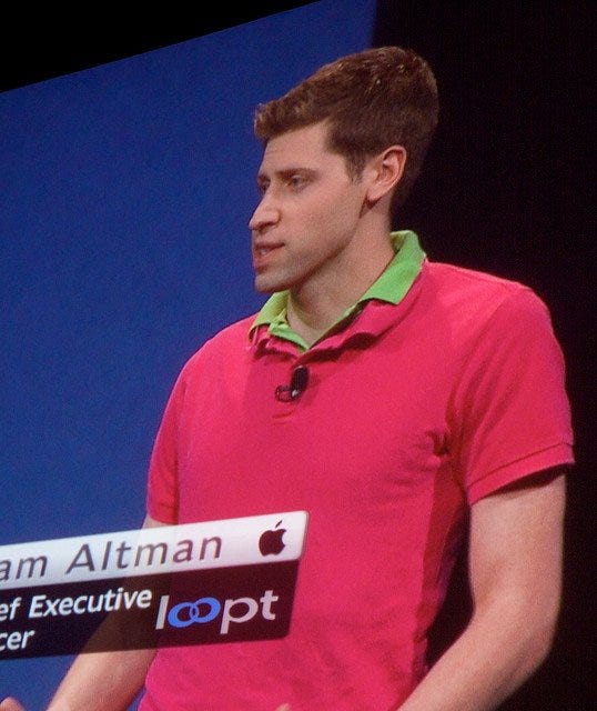 In 2007, Altman appeared on stage with Steve Jobs at Apple’s developers conference, demonstrating Loopt on the newly launched iPhone. For the occasion, he wore two polo shirts layered one over the other. Hot pink on top with a lime green collar underneath. The fashion choice was questionable, and would later become the subject tech memes.