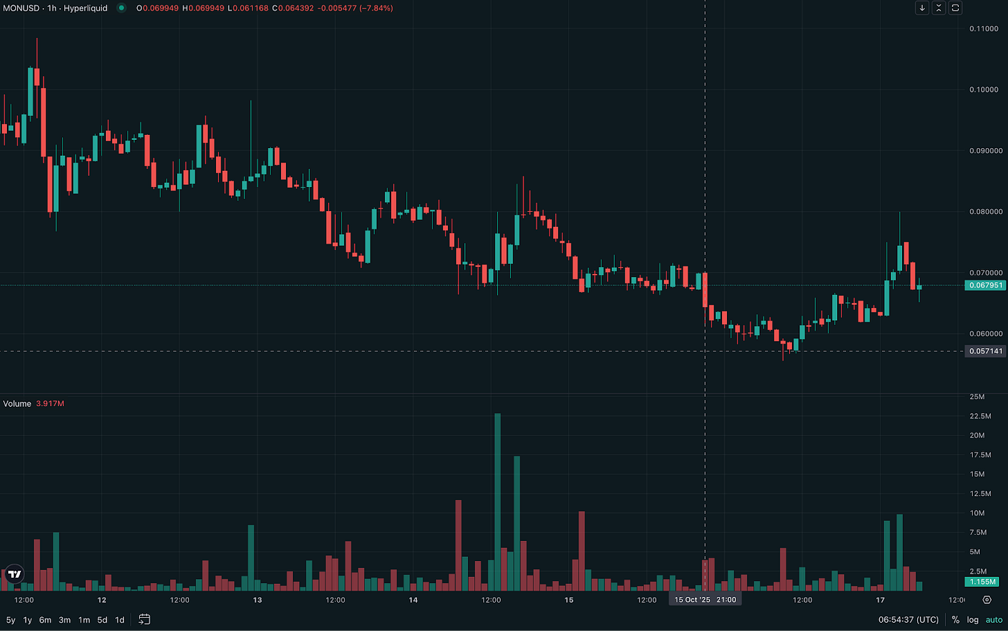 At least that was the pitch when the testnet launched early this year. Its mainnet is now weeks away. Its native token, MON, already trades on the perpetuals market with a pre-launch FDV estimate of around $6 billion on Hyperliquid.