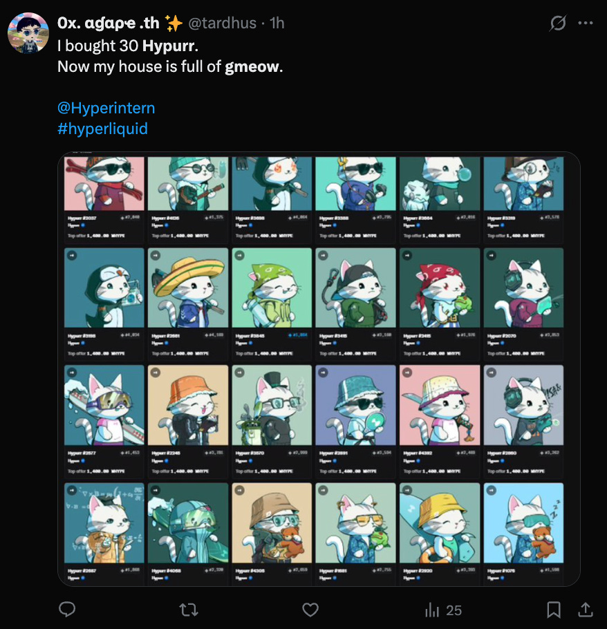 In most airdrops, the narrative is around the financial value it carries. Hyper Foundation explicitly framed Hypurr Cats as a “memento” in their note on X, making it sound like a cultural thank-you to early believers rather than a mere promise of financial utility. Probably why the drop felt like a homecoming to those who bet and patiently waited.