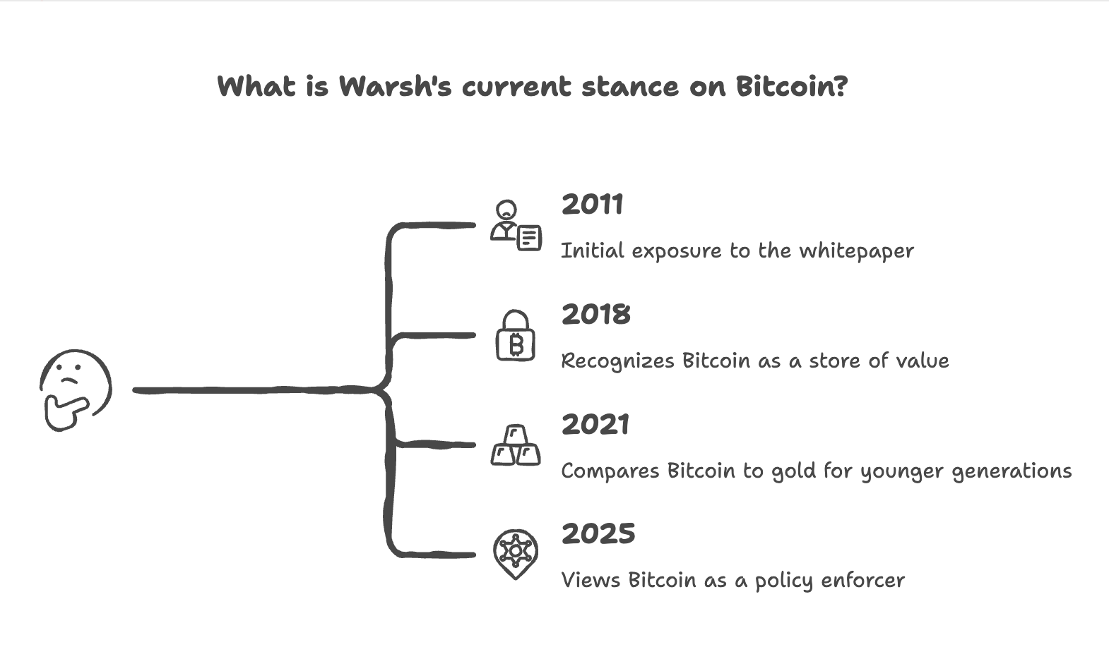 His public statements track with this. In 2011, Warsh saw the Bitcoin whitepaper at a dinner hosted by Marc Andreessen. In 2018, he wrote in The Wall Street Journal that Bitcoin could become a sustainable store of value similar to gold. In 2021, he stated on CNBC that Bitcoin is the new gold for those under 40. And in 2025, at the Hoover Institution, he provided his most comprehensive statement to date: Bitcoin is not a replacement for the dollar, but it can serve as an excellent policeman of monetary policy. I wouldn’t call Warsh a Bitcoin maximalist. A monetary policy professional who treats Bitcoin as a legitimate signal of the dollar's health may, in some ways, be more useful to the industry.