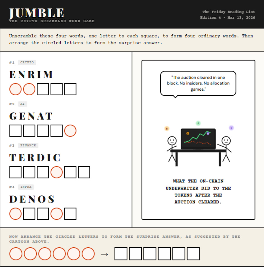 Welcome to Edition 4 of The Friday Reading List â your fortnightly antidote to the noise. Every two weeks, I share my favourite literature across crypto, finance, technology, culture, and beyond. I also share what Iâm watching and reading, because life shouldnât be all about price charts and portfolio bags.