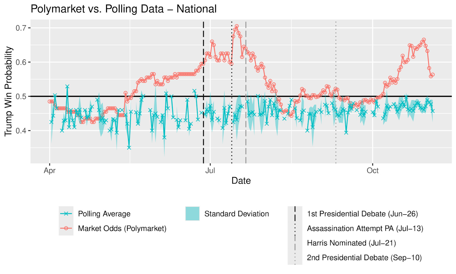 When thousands of people continuously update their expectations in a live market, the collective probability often tracks reality surprisingly well.