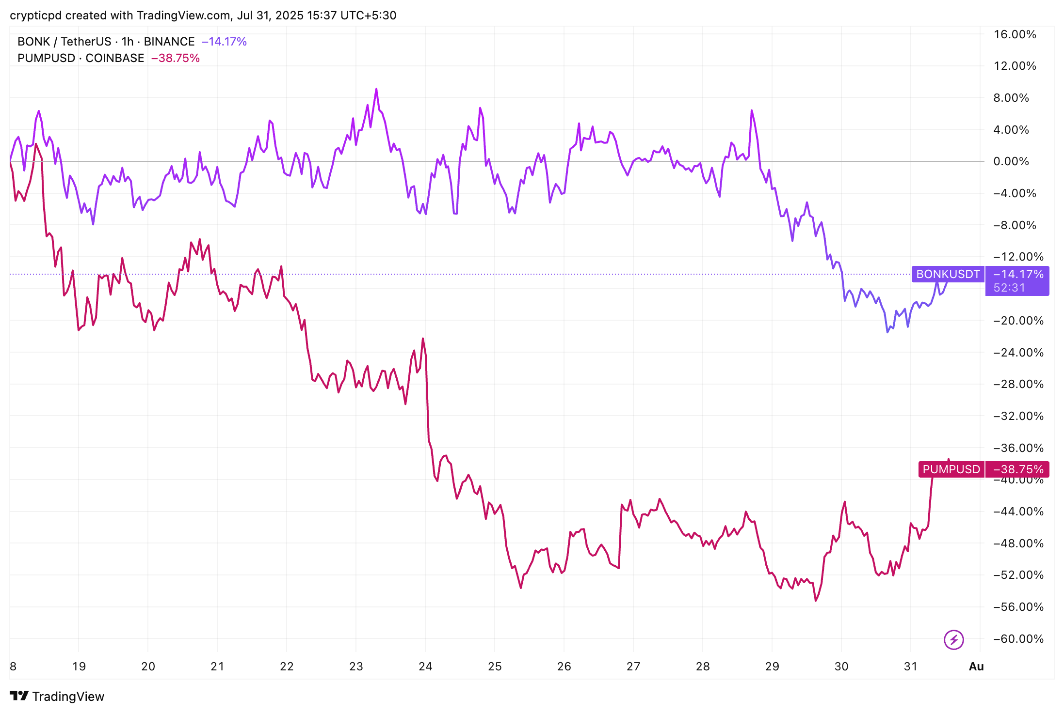 While PUMP has shed 60% of its value post-ICO, BONK has maintained relative stability with a $2.1 billion market cap.