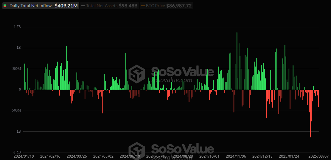 While an aggregate of $22 billion came in through daily inflows after Trump’s re-election as of March 7, more than a total of $10 billion were pulled out in daily outflows during the same duration.
