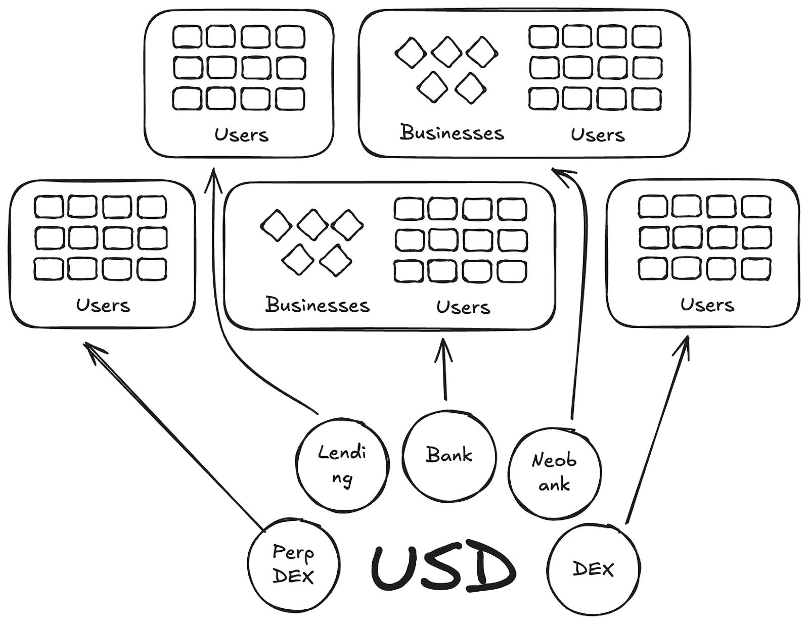 In our Visa story, these are like the BankAmericards. Ethena, Anchorage Digital, M0 or Bridge. Each one allows a protocol to come and issue its own stablecoin, only fragmenting the industry in the process.