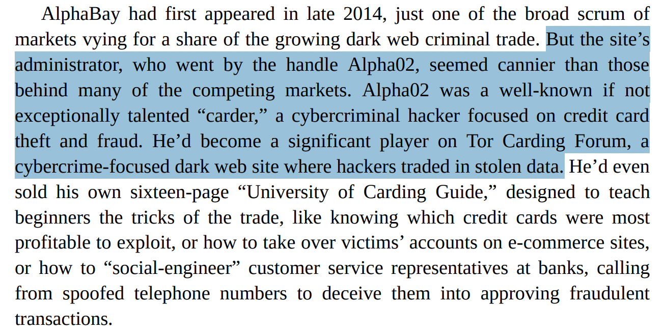 The second big thread in this middle section is AlphaBay.
