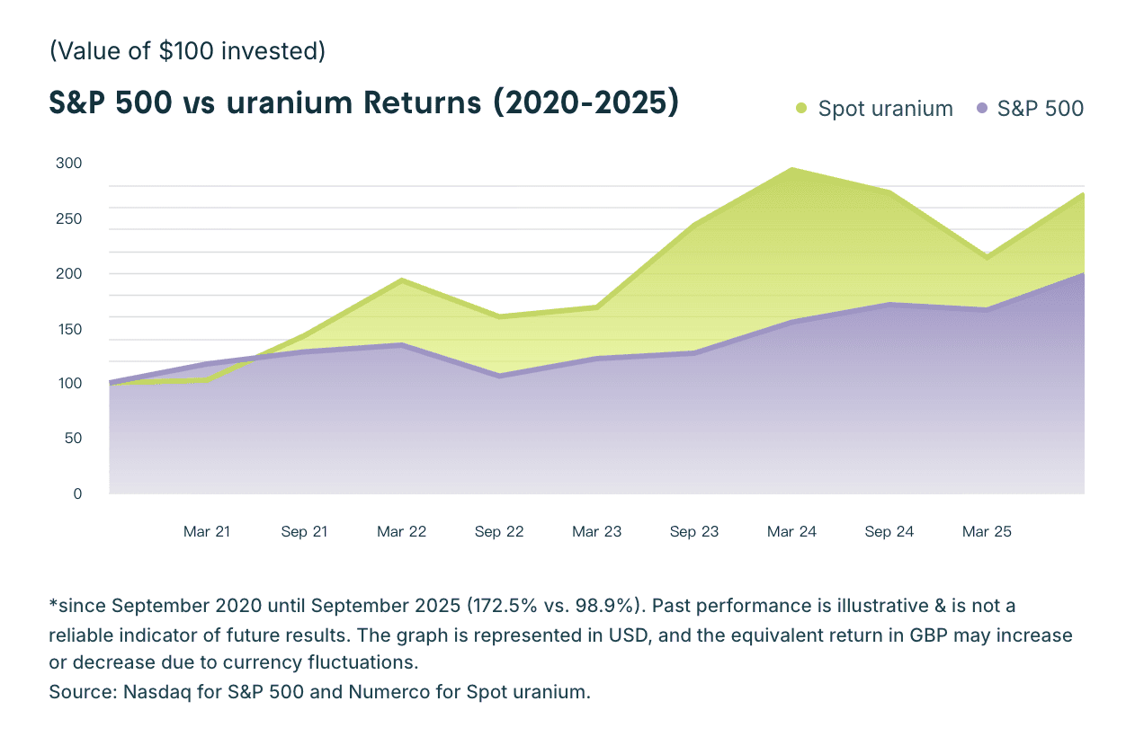 As a result, exposure has often come through workarounds. The most common method is by investing in uranium mining stocks. Investors buy producers or developers as a proxy for uranium prices, even though these businesses are affected by many factors beyond the commodity itself. Operating issues, financing cycles, jurisdictional risks, and management decisions often matter as much as, or more than, the price of uranium. In some cycles, equities amplify uranium price movements, while in others, they diverge completely.