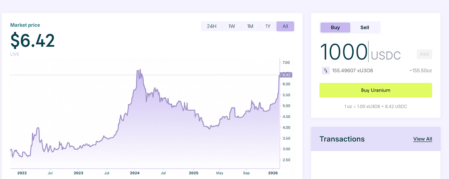 One idea that significantly expands participation in the uranium market is to make it tradable on-chain. This means turning exposure to physical uranium into something that can be held and transferred digitally, without negotiating contracts, arranging storage, or relying on fund structures. If that works, uranium exposure would no longer be restricted to utilities, producers, or a narrow set of institutions. Access could be widened to anyone who meets regulatory requirements.