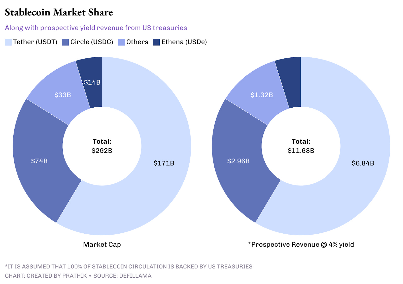 Stablecoin leader Tether currently holds over $100 billion in reserves, generating more than $4 billion in interest income. That’s more than the consolidated profit Starbucks made, $3.761 billion, serving coffee worldwide in the last fiscal year. And the USDT issuer does this simply by parking its reserves in US Treasuries. Circle leveraged the same approach when it went public last year, highlighting the float as its core revenue engine.