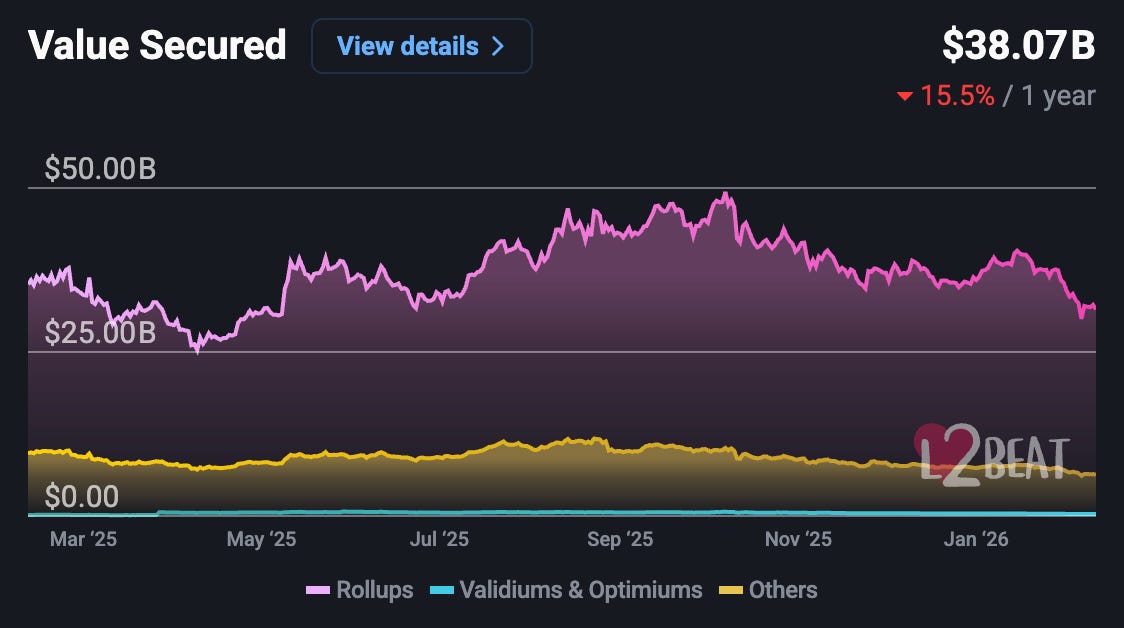 The next tier, such as OP Mainnet, Lighter, Starknet, Ink, Linea, zkSybc Era accounts for about $6 billion combined. Everything else is a rounding error.