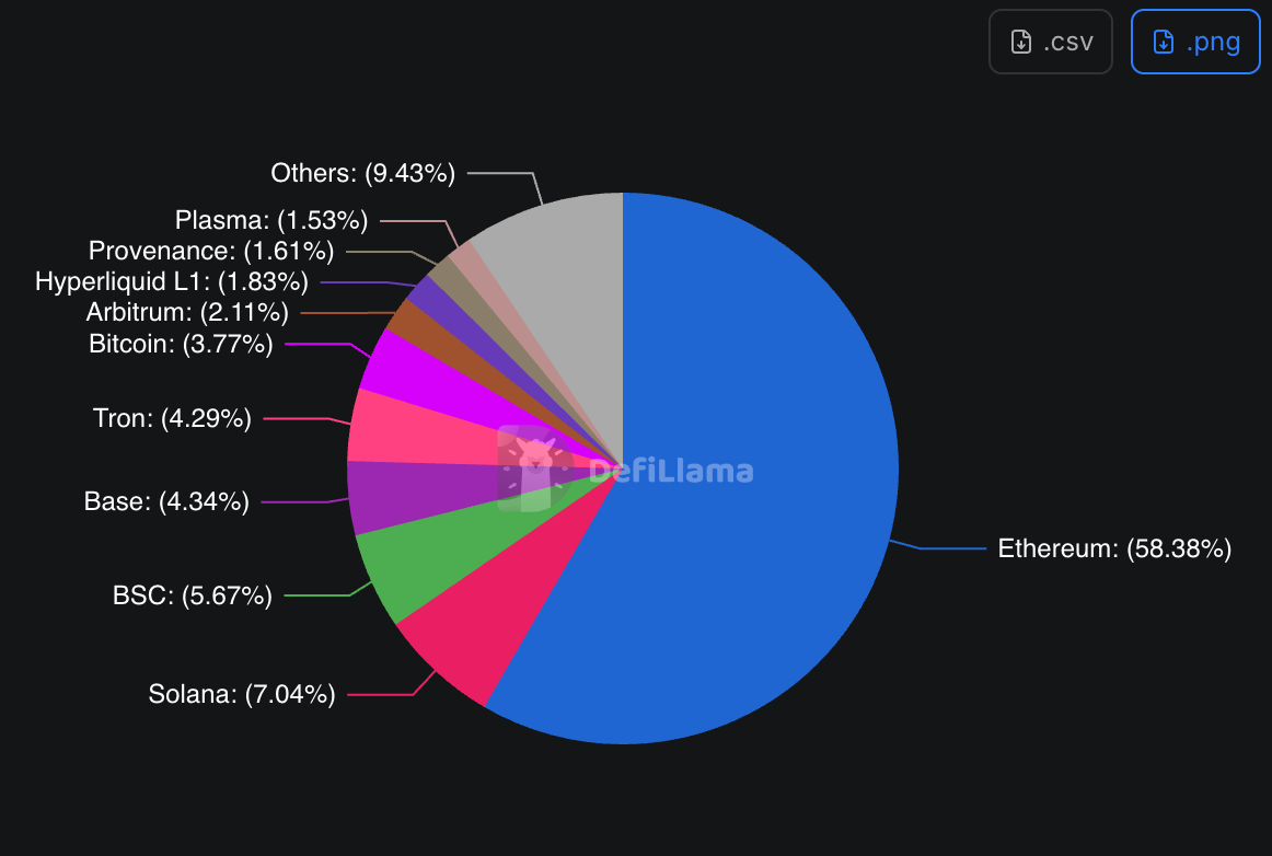 Ethereum maintained roughly 55% of total stablecoin supply, adding $50 billion in new issuance in 2025 alone, driven primarily by institutional flows, tokenisation, and RWA infrastructure. Tokenised real-world assets, the thing every bank wants to do on-chain are 56.8% on Ethereum, which holds nearly $10 billion of the RWA market. When institutions want to park something serious, they still come to Ethereum.