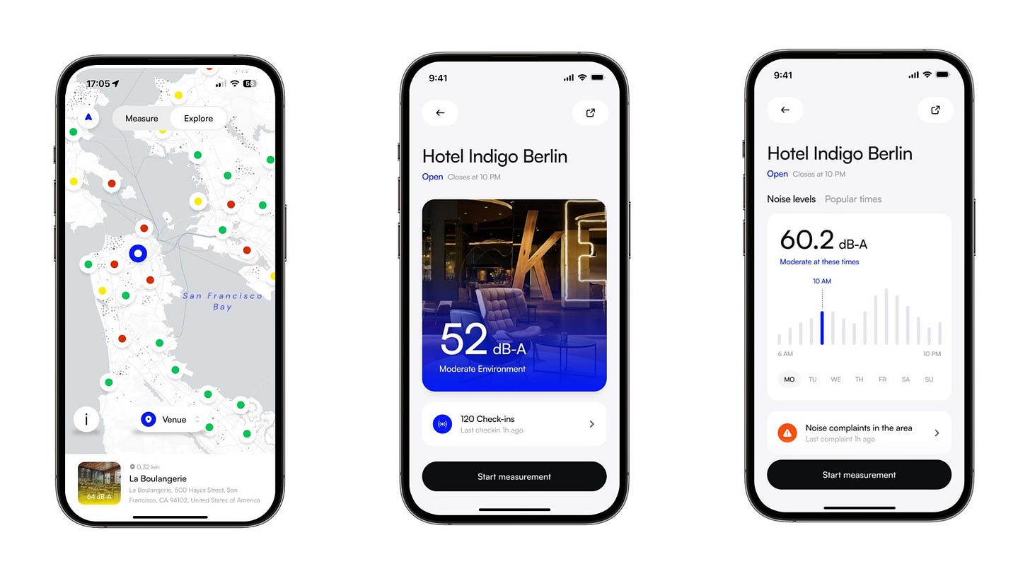 The data goes into a live noise map that anyone can check. City planners use it to design quieter streets. Real estate platforms buy it to show noise levels on listings. Hotels use it to verify their “quiet room” claims actually mean something.