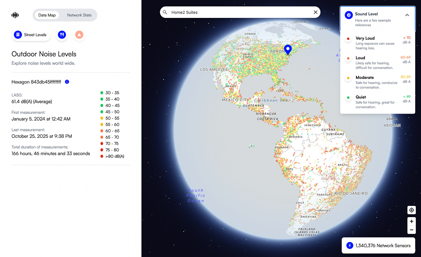 The app already has over 800,000 users across 180+ countries. They’ve collected data covering more than 43 billion square meters and recorded over 8 million hours of measurements. It’s become the world’s largest noise intelligence platform, and it’s still growing.
