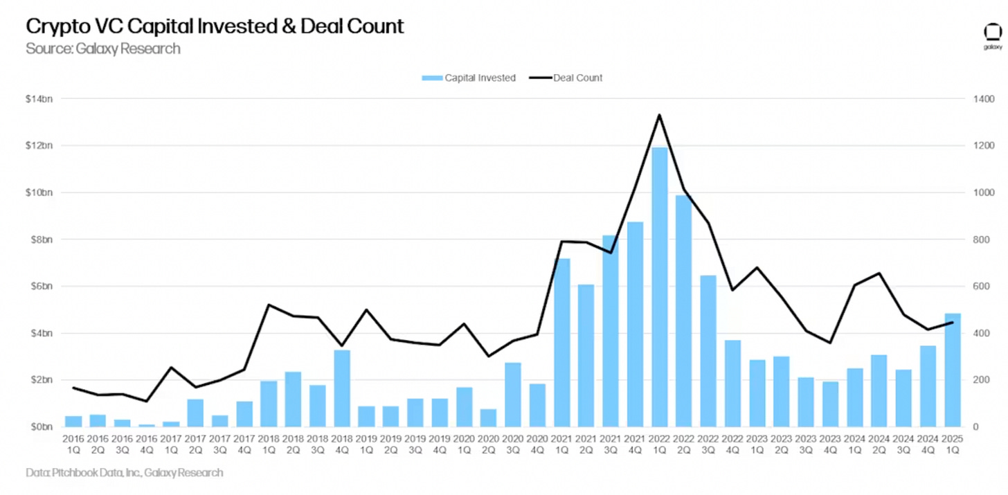 Bitcoin hit new highs while VC activity stayed subdued. Turns out, when institutions can buy Bitcoin ETFs, they don't need to fund risky startups for crypto exposure.
