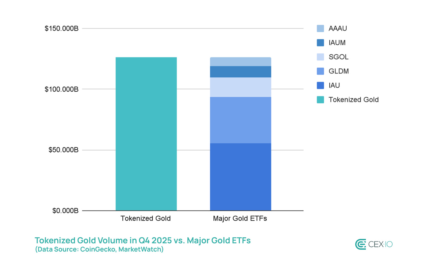More than 1.2 million ounces of physical gold now sit in vaults backing these tokens. Annual trading volume reached $178 billion in 2025, making tokenised gold the second-largest gold investment product by volume globally, trailing only the SPDR Gold Shares ETF. In Q4 2025 alone, tokenised gold moved $126 billion. That is more volume than every other gold ETF in the world except GLD.