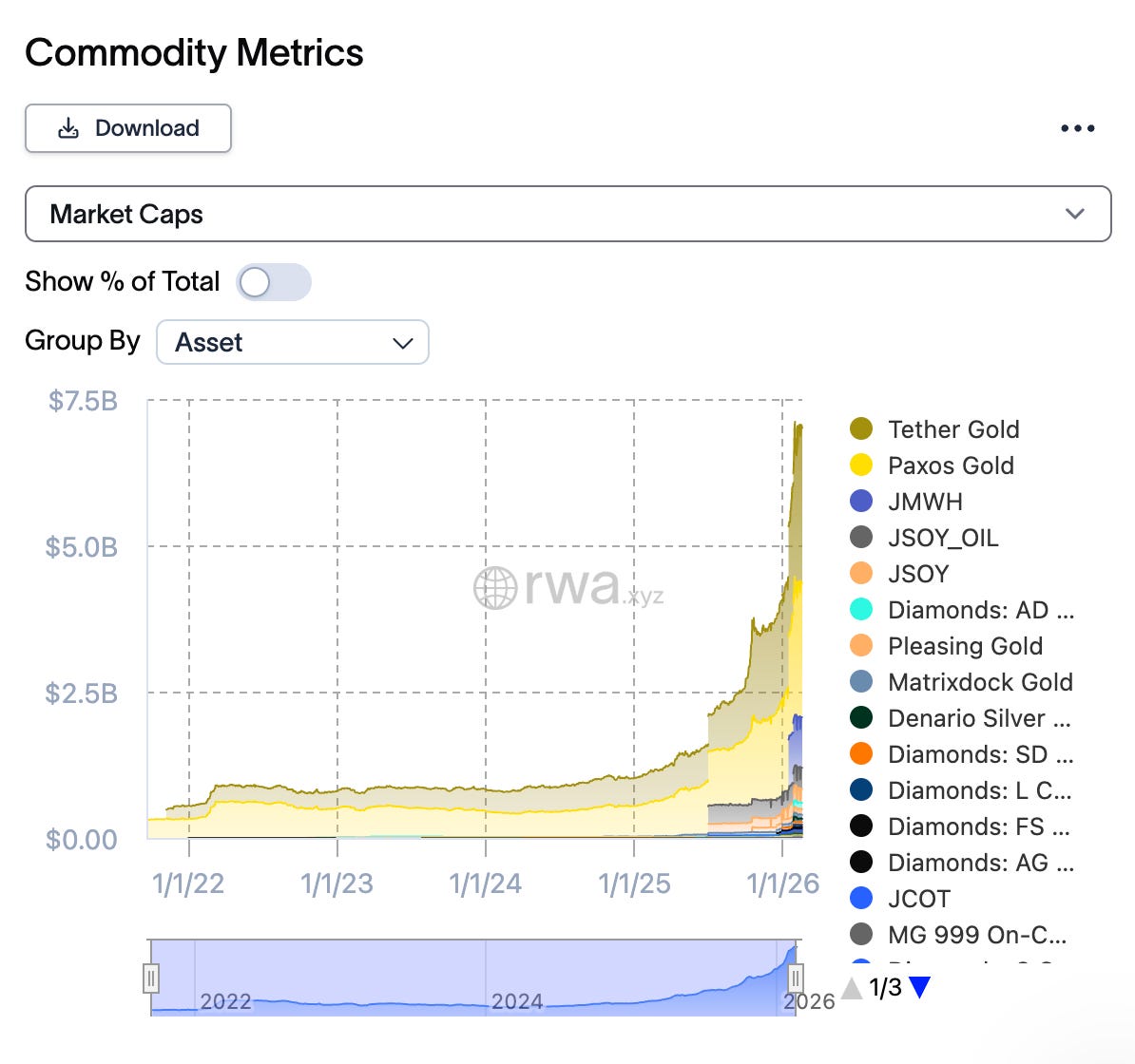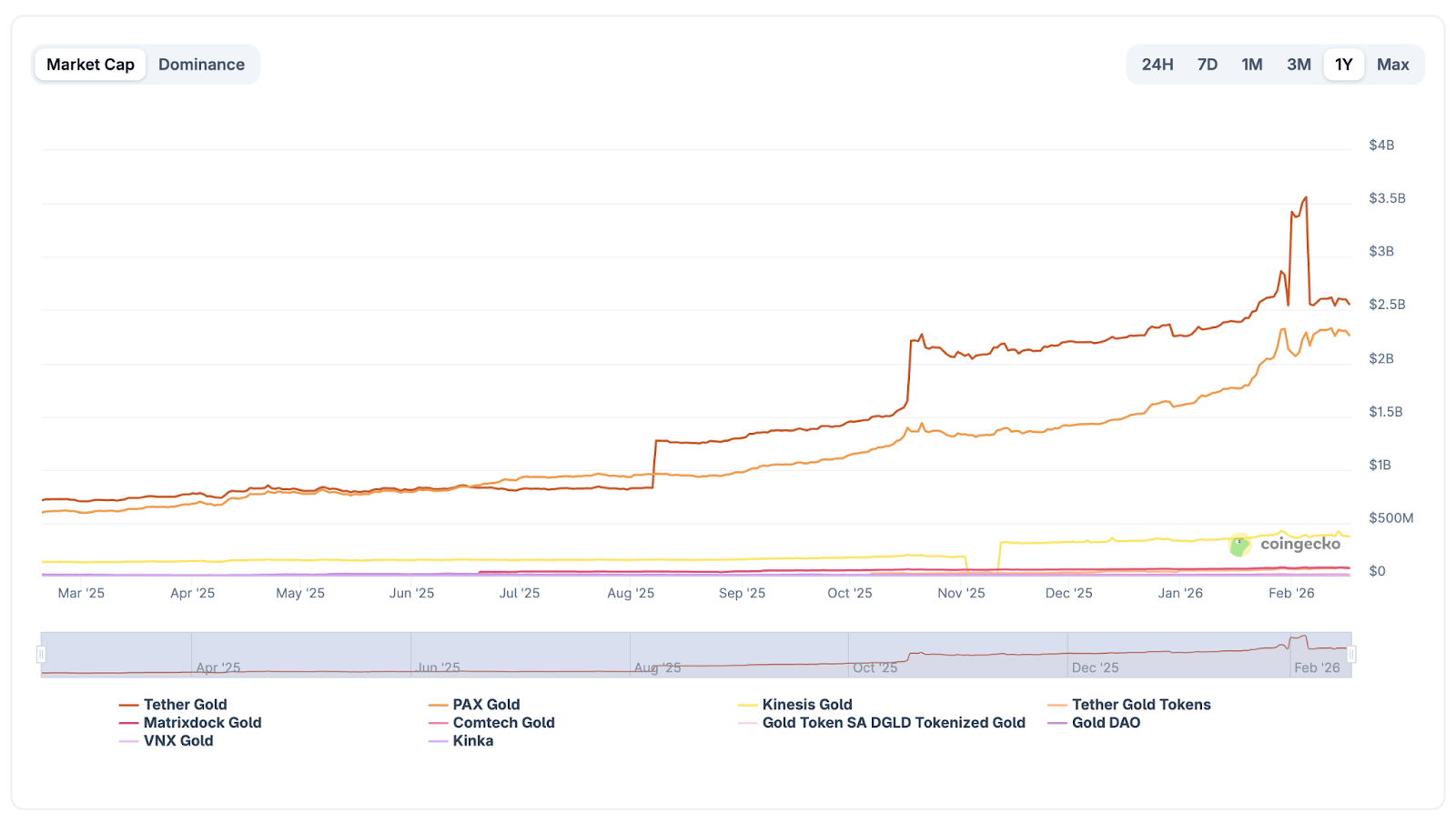Virtually all of it runs through two tokens. Together, they account for roughly 97% of the entire tokenised gold market. There is no meaningful third player. A clear duopoly.