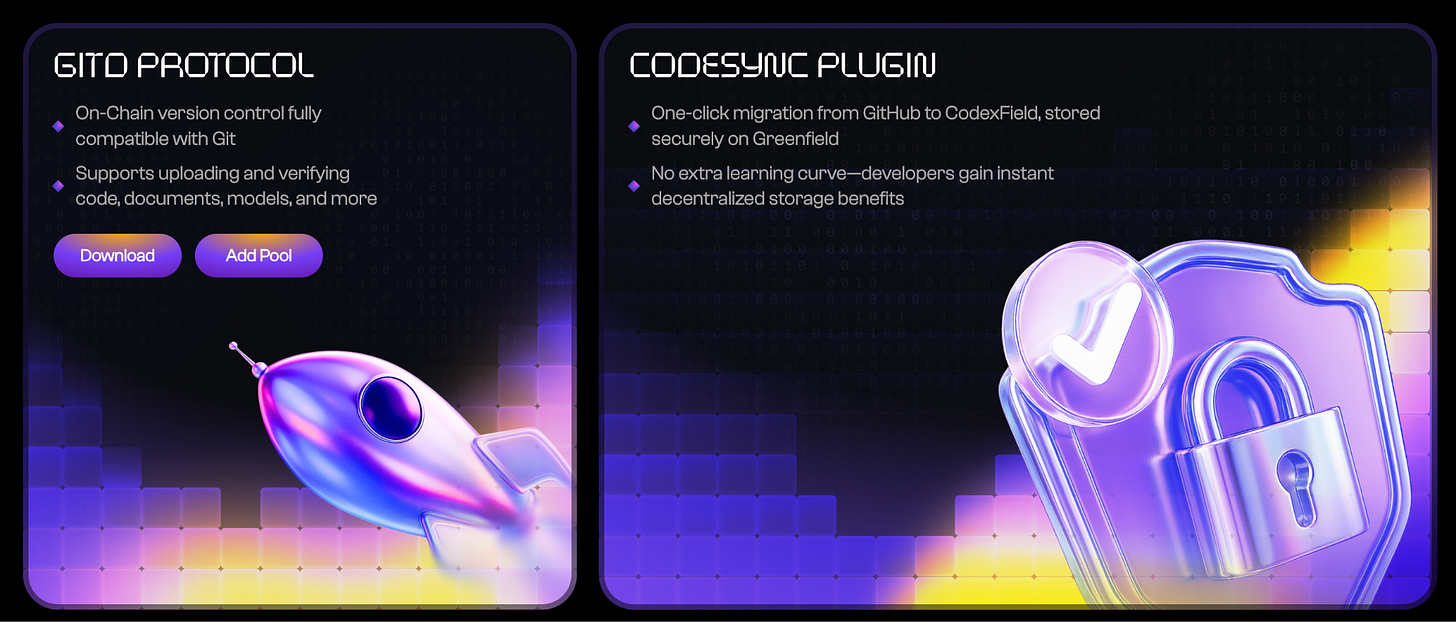 The Gitd Protocol extends Git functionality to decentralised storage without changing the command-line experience. You use familiar commands like gitd clone and gitd push, but your code gets stored on Greenfield instead of GitHub’s servers. Each repository receives an on-chain certificate that establishes verifiable ownership tied to your wallet address. Your full commit history, branches, and tags work identically to centralised Git.