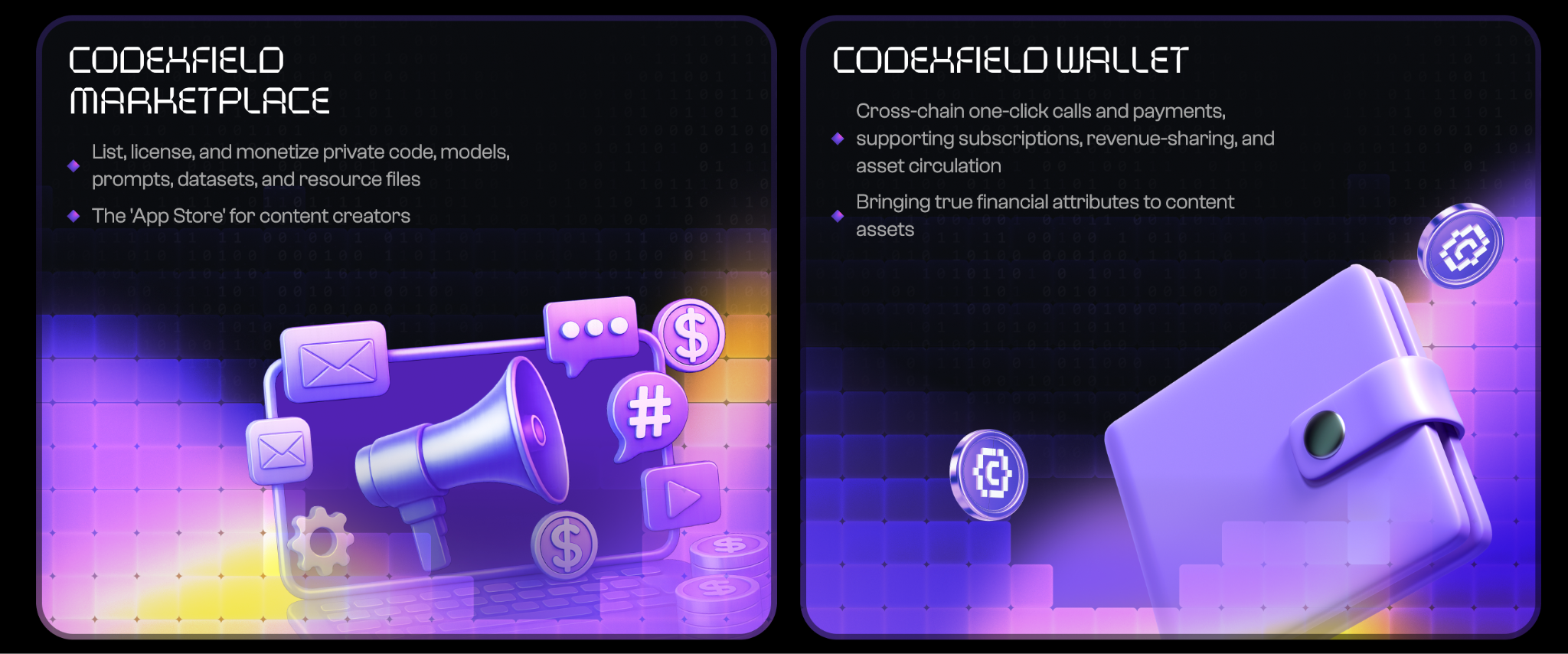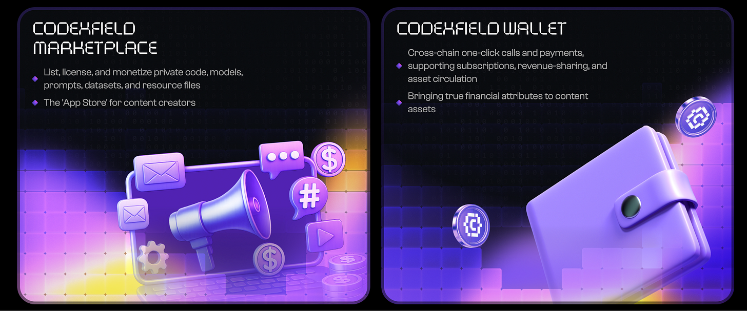 CodexField introduces “Content Capsules,” which is a mechanism that packages code, AI models, datasets, or documentation into verifiable digital assets with embedded ownership, permissions, and pricing logic.